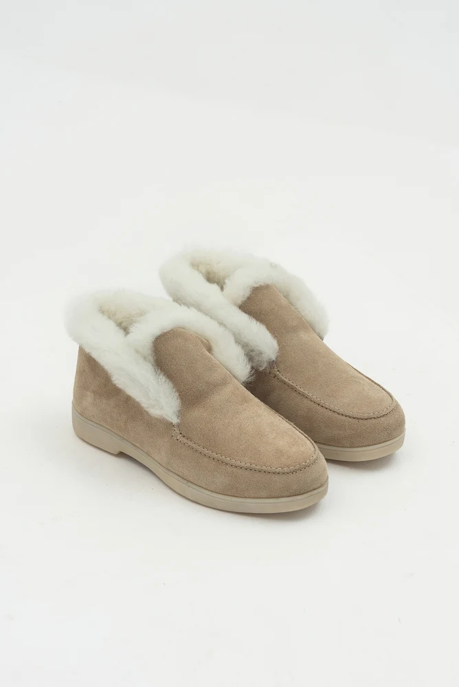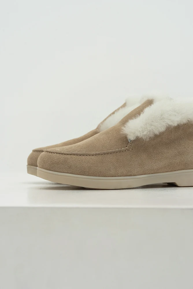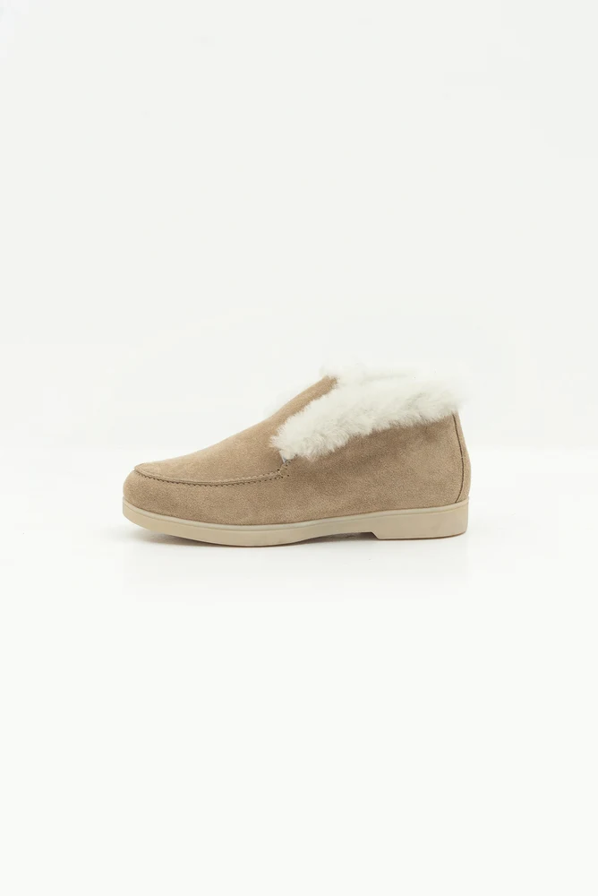 Черевики Женева у бежевій замші з натуральним хутром – це ідеальне поєднання тепла, зручності та універсальності. Натуральна замша в поєднанні з м’яким хутром забезпечує комфорт навіть у найхолодніші дні, дозволяючи вашим ногам залишатися в теплі та затишку.