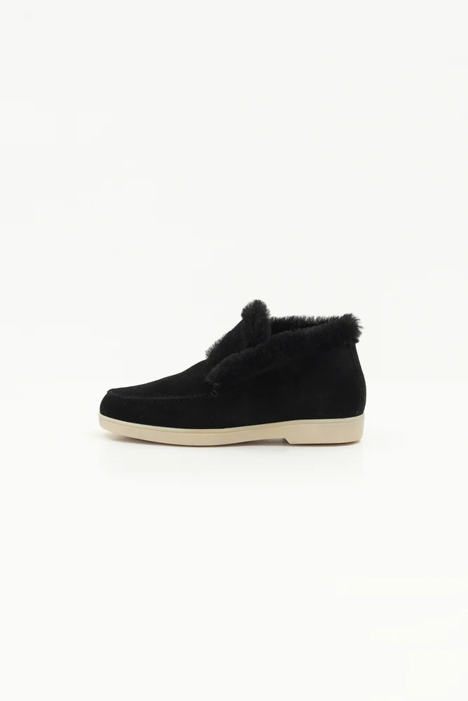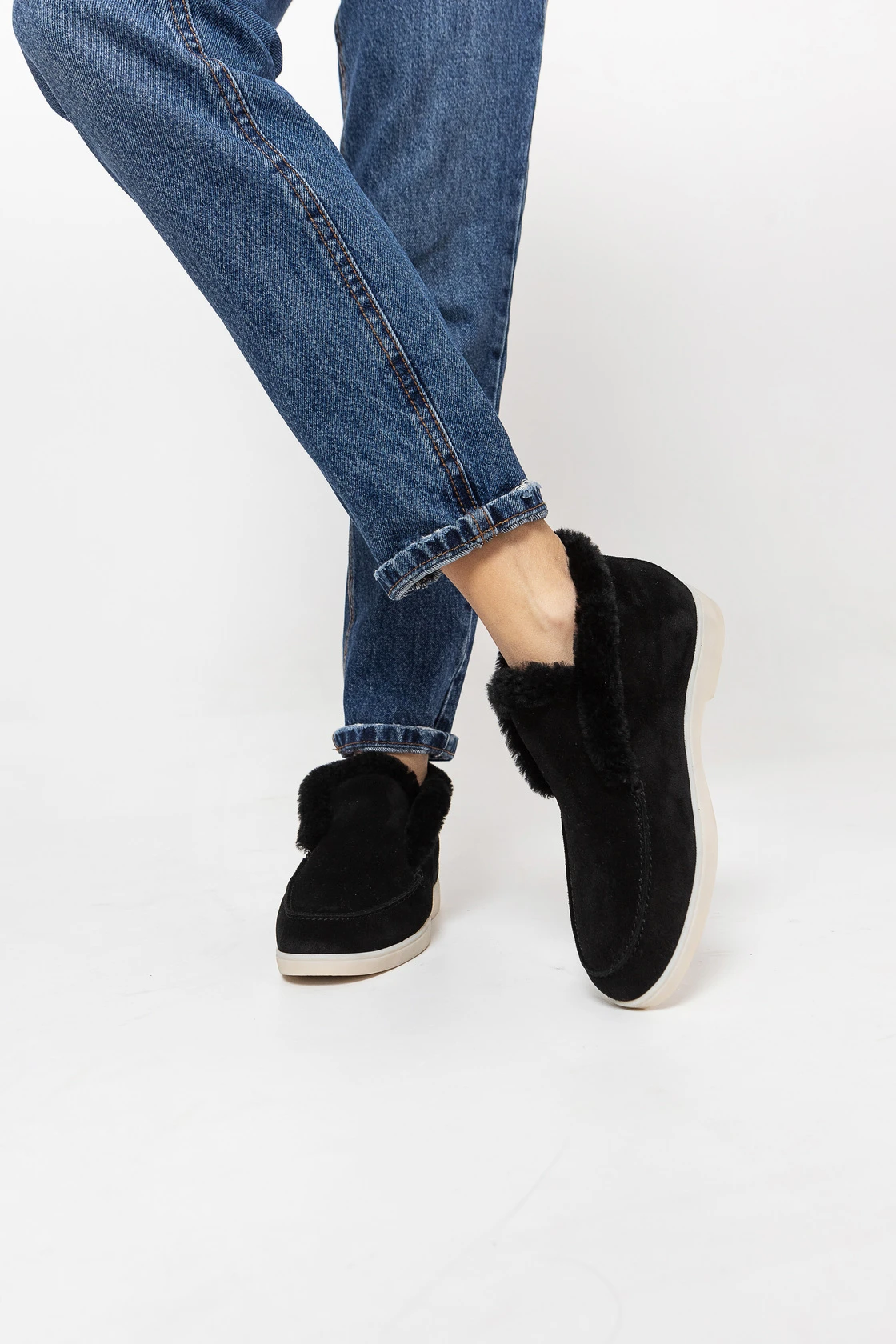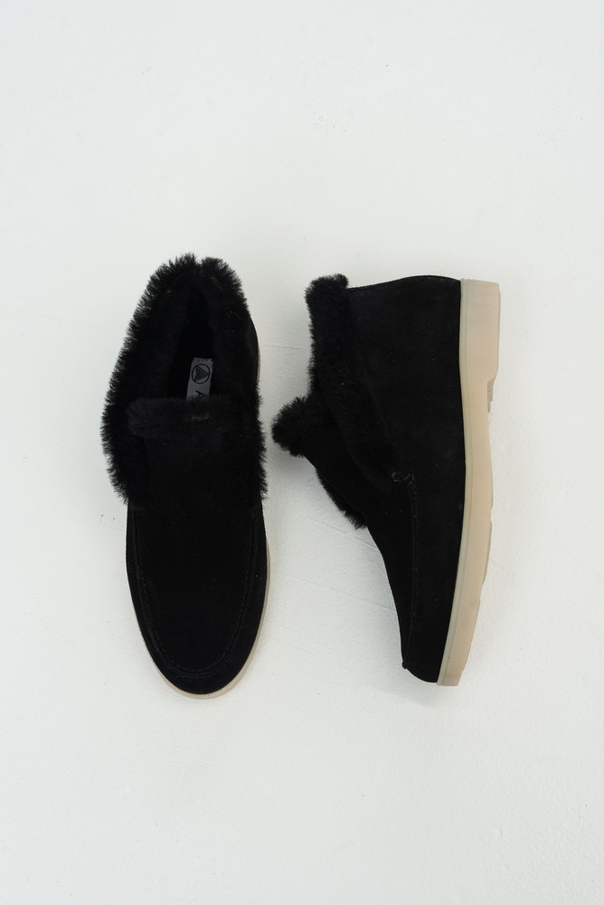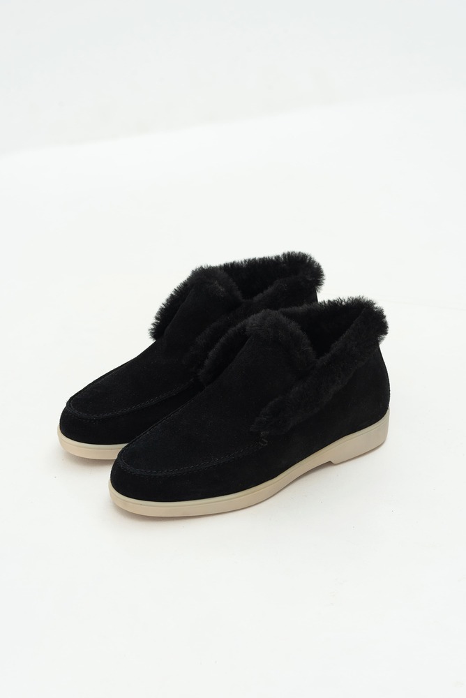 Жіночі черевики Женева у чорній замші з натуральним хутром у тон – це поєднання універсальності та елегантності. Натуральна замша та хутро забезпечують максимальний комфорт і тепло в холодну пору року. Стильний чорний колір робить цю модель незамінною в гардеробі, оскільки вона легко поєднується з будь-якими образами.