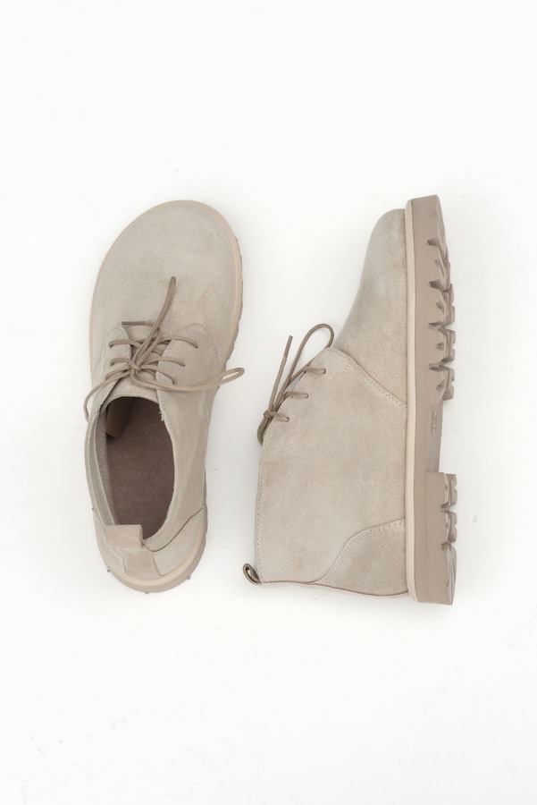 Бежеві дезерти з натуральної замші створені для легких, сучасних і невимушених образів. Світлий відтінок додає свіжості та візуально робить силует легшим. Тепла байкова підкладка забезпечує комфорт у прохолодну пору, а підошва EVA зменшує втому навіть під час довгих прогулянок.